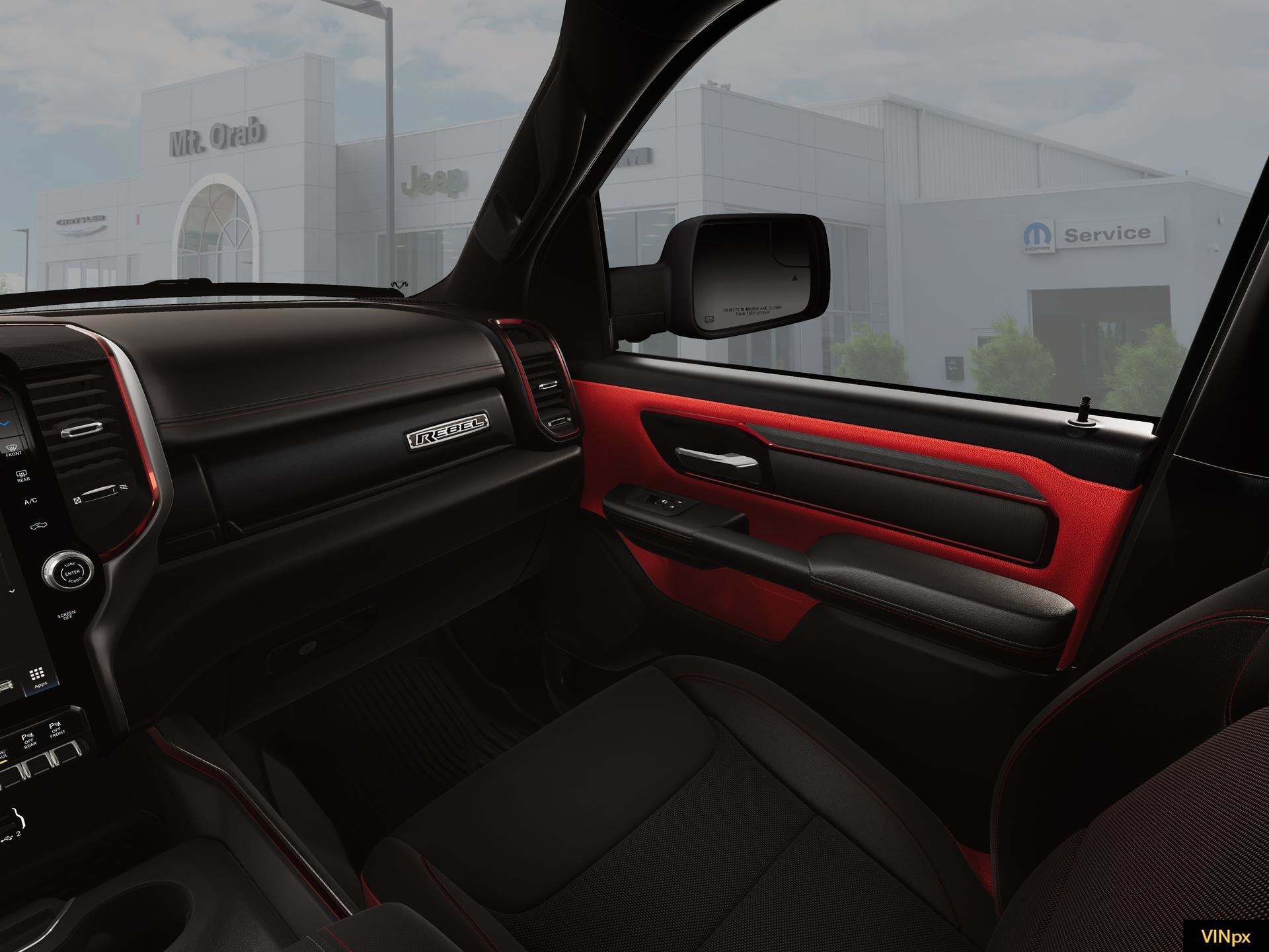 Alloy Wheels, Aluminum Wheels, Bluetooth®, Navigation System, Backup Camera, 3.92 Rear Axle Ratio, Alloy wheels, Apple CarPlay, Apple CarPlay/Android Auto, Auto Power-Folding Mirrors, Auto-Dimming Exterior Driver Mirror, Black Exterior Mirrors, Black Premium Power Mirrors, Cloth/Vinyl Bucket Seats, Convex Wide-Angle Exterior Mirror Insert, Exterior Mirrors Courtesy Lamps, Exterior Mirrors with Heating Element, Exterior Mirrors with Supplemental Signals, GPS Navigation, Navigation System, ParkView Rear Back-Up Camera, Power Adjustable Pedals, Quick Order Package 21W Rebel, Rear Window Defroster, Rebel Level 1 Equipment Group, Remote Tailgate Release, Trailer Brake Control, Wheels: 18 x 8.0 Painted Mid-Gloss Black, Wireless Charging Pad.