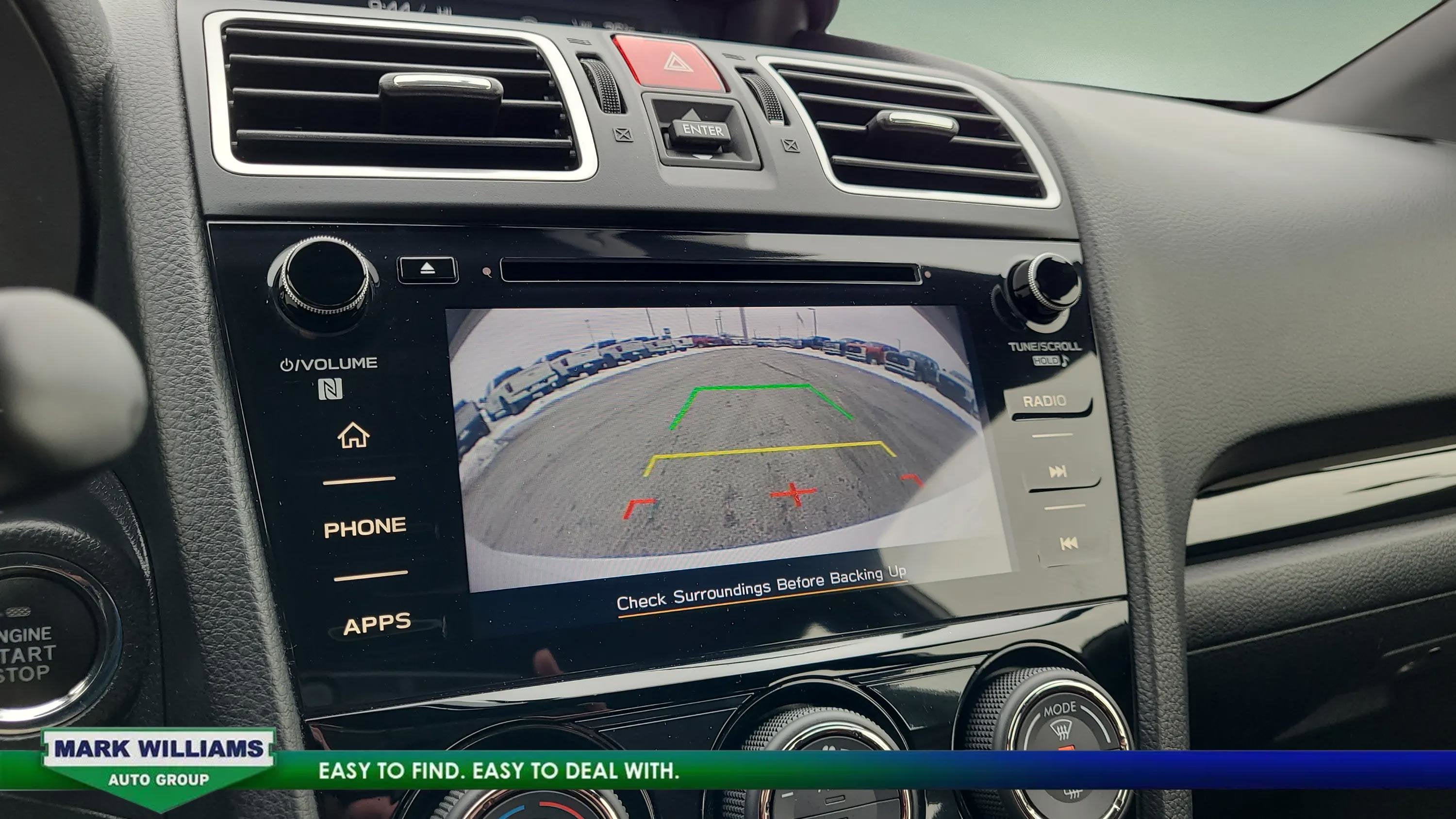 This WRX is equipped with electronic stability control, traction control, ABS brakes, multiple airbags, tire pressure monitoring, brake assist, heated door mirrors, remote keyless entry, and steering wheel–mounted audio controls.