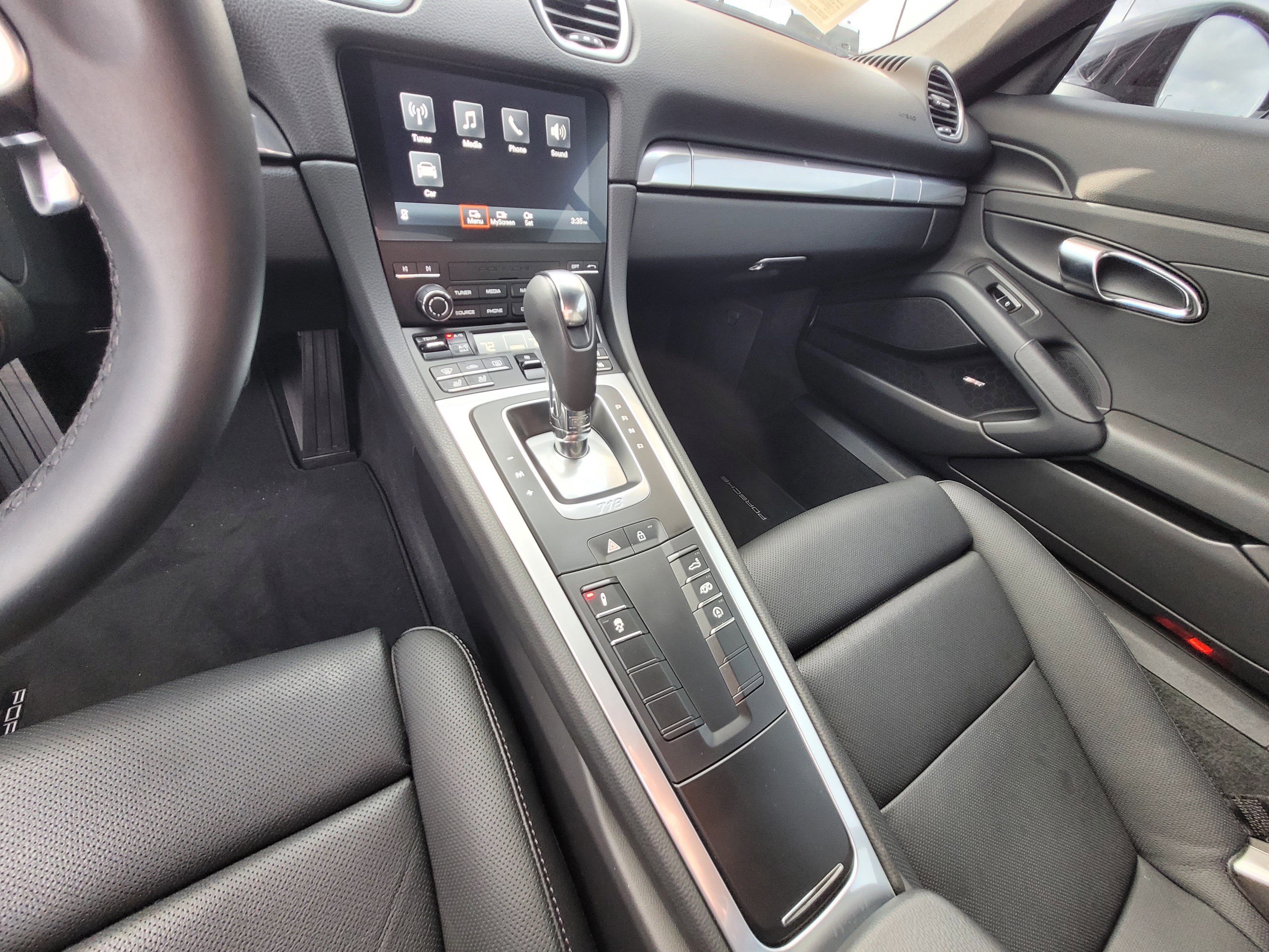 Inside, the Cayman features Sport Seats Plus with leather backrest shells, offering excellent lateral support while maintaining long-distance comfort. The cabin is further enhanced by Porsche Communication Management with Apple CarPlay integration, a rearview camera, Lane Change Assist for added confidence on the highway, and striking 20-inch Carrera S wheels that complete the exterior’s aggressive stance.